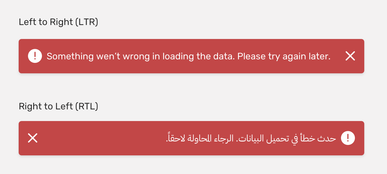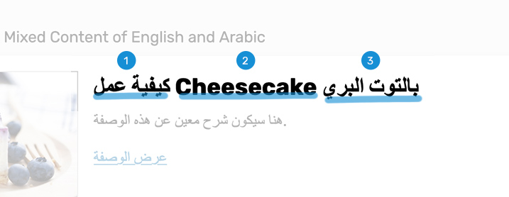 After we add dir="rtl" for the Arabic element, the result looks like this: